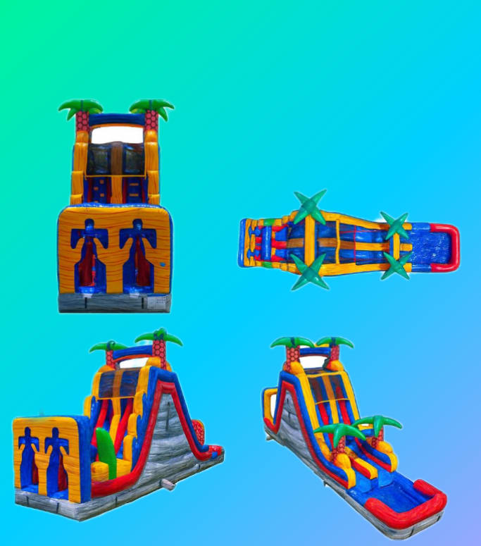 Bring energy and excitement to any event with the 18' Obstacle Palm Rush Double Wet. This waterslide rental blends a fun obstacle course entrance with twin racing lanes and a splash landing. Perfect for birthdays, schools, churches, and city events. Fast setup. Big impact. Safe fun. 🎉